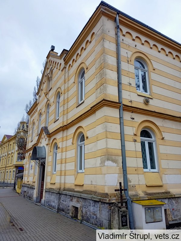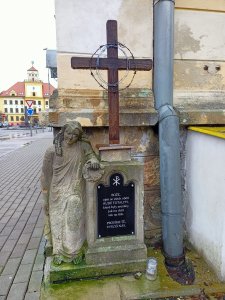 Umístění: Kraslice, Kpt. Jaroše 321/2, na rohu faryNápis: