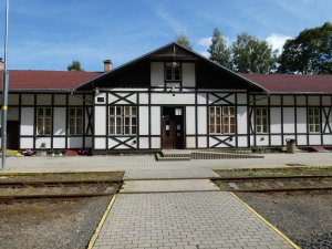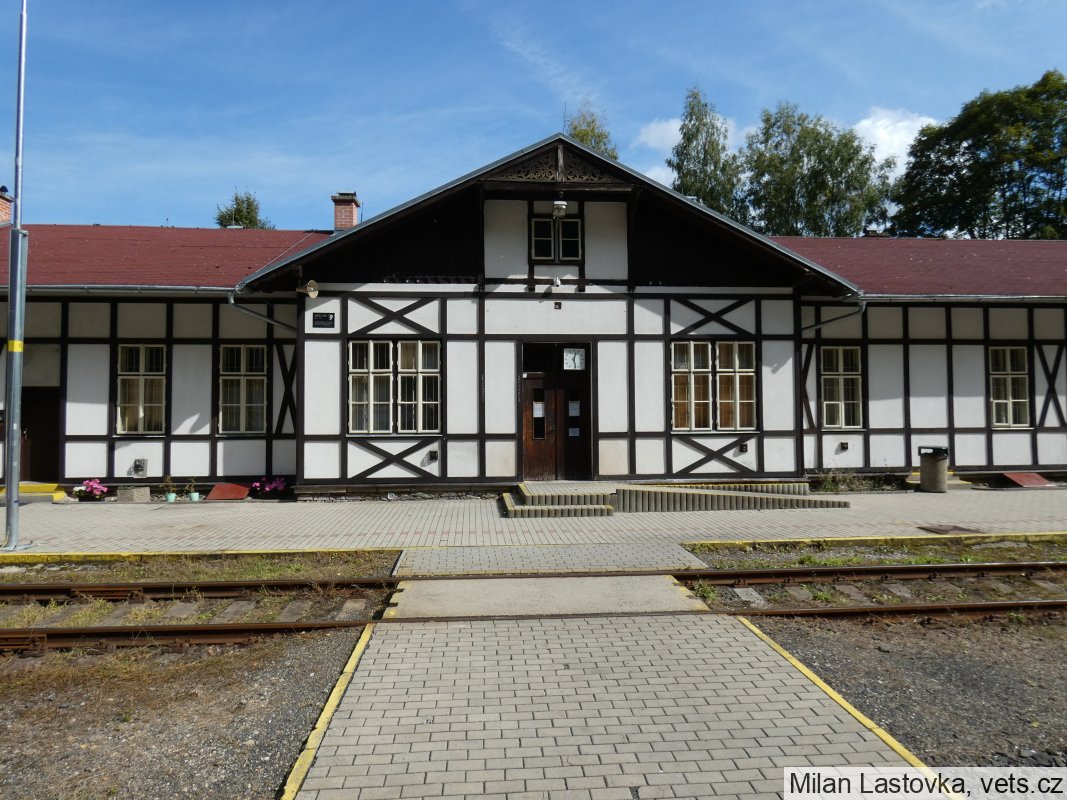 Umístění: Kraslice, Kpt. Jaroše 713/9, starší část budovy nádraží ze strany perónuNápis: