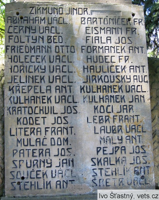 Umístění: Hudlice, na návsiZIKMUND JINDR. ???, ABRAHAM VÁCL., BARTONÍČEK FR., ČERNÝ VÁCL., EISMANN FR., FOLTYN BEDR., FIALA JOS., FRIEDMANN OTTO, FORMÁNEK ANT., HOLEČEK VÁCL., HUDEC FR., HOŘICKÝ VÁCL., HAVLÍČEK ANT., JELÍNEK VÁCL., JIRKOVSKÝ AUG., KŘEPELA ANT., KULHÁNEK VÁCL., KULHÁNEK VÁCL., KULHÁNEK JAN, KRATOCHVÍL JOS., KOČÍ JAR., KODET JOS., LEBR FRANT., LITERA FRANT., LAUBR VÁCL., MULAČ DOM., MALÝ ANT., PATERA JOS., PEJPA JOS., SPURNÝ JAN, SKALKA JOS., SOUČEK VÁCL., STEHLÍK ANT., STEHLÍK ANT., ŠRETR VÁCL.