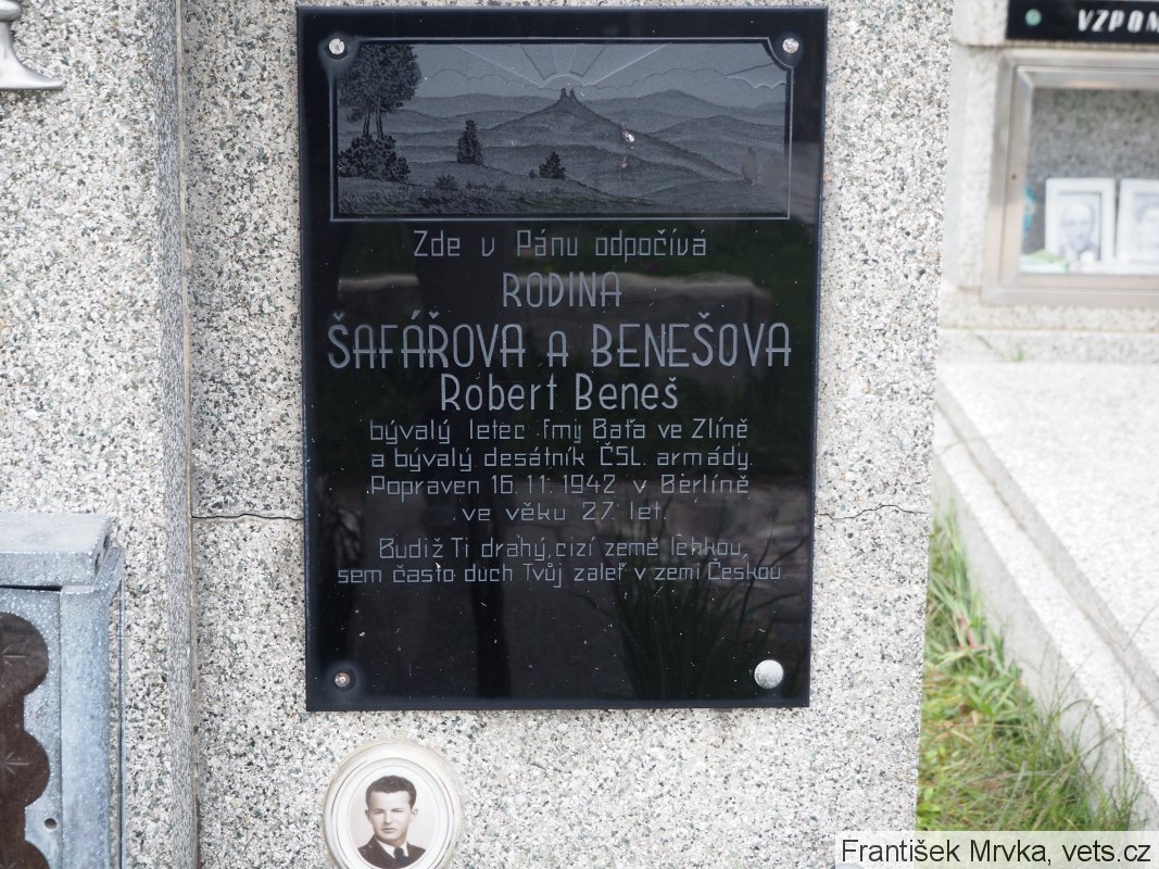 Beneš Robert Jan: *27.1.1915 Třeboň. Soukromý úředník, obchodník. 22.5.1942 byl odsouzen Lidovým soudním dvorem k trestu smrti za přípravu k velezradě, zemězradu a napomáhání nepříteli. +16.11.1942 popraven Berlín - Plötzensee. (zdroj: old.ustrcr.cz/cs/popraveni-plotzensee )