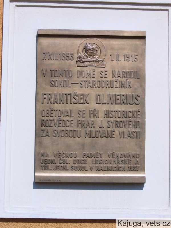 Oliverius František, narozen 7.12.1893, Radnice. V ČS družině v Rusku zařazen od 27.8.1914 jako vojín. Padl 17.1.1916.