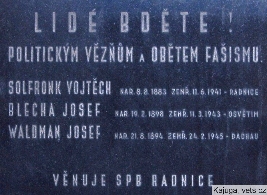 SOLFRONK VOJTĚCH NAR. 8.8.1883 ZEMŘ. 11.6.1941 - RADNICE