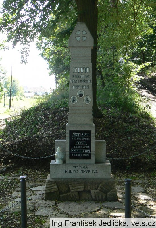 Josef Mrvka, nar. 16.8.1891 ve Slejboři, okr. Dačice, Morava, učitel, náhradní praporčík 14. zeměbraneckého pěšího pluku Brno, stříbrná medaile I. stupně ,,Za statečnost", padl 30.6.1916 za ústupových bojů při obraně Lucku v průběhu Brusilovovy ofenzívy.