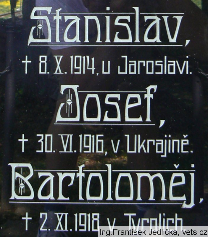 Stanislav Mrvka, nar. 1.8.1886 ve Slejboři, okr. Dačice,Morava, vojín 81. pěšího pluku Jihlava - II. setnina, padl 8.10.1914 v Haliči u vesnice Medynia Glogowska, pohřben 9.10.1914 buď přímo na bojišti, nebo na místním starém hřbitově.
