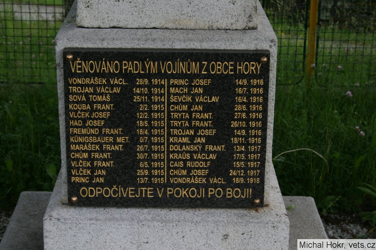 Věnováno padlým vojínům z obce Hory