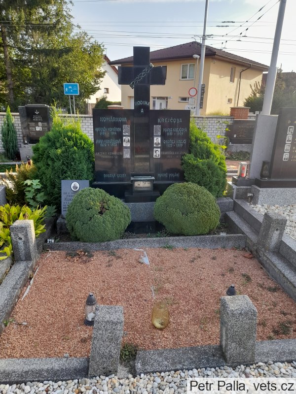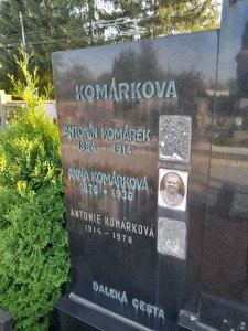Antonín Komárek, *11.7.1886 Brno-Ivanovice (datum narození potvrzeno v matrice) – + 14.9.1914 Krakov (Polsko), do první světové války nastoupil hned na první výzvu 1.8.1914 na východní frontu, zemřel již v září téhož roku, nikdy se nedozvěděl, že dítě, které manželka Anna v době jeho odchodu do války čekala, byla dcera Antonie (uvedeni též na náhrobku), příčina úmrtí: v nemocnici na následky válečných útrap