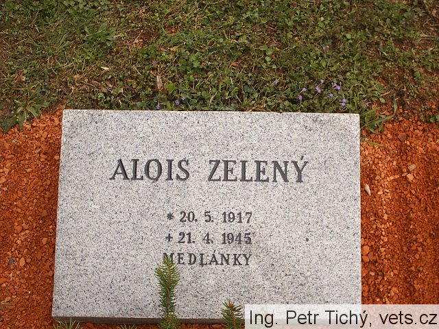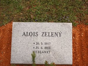 Alois Zelený, *20.5.1917 Znojmo – †21.4.1945 Brno-Medlánky, prodavač, hrob č. 64