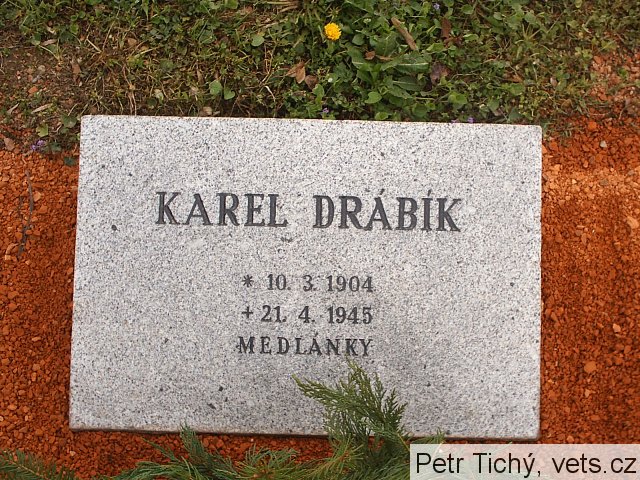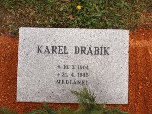 Karel Drábík, *10.3.1904 Brno – †21.4.1945 Brno-Medlánky, bydliště Brno, Bezručova 19, pražič kávy, hrob č. 61