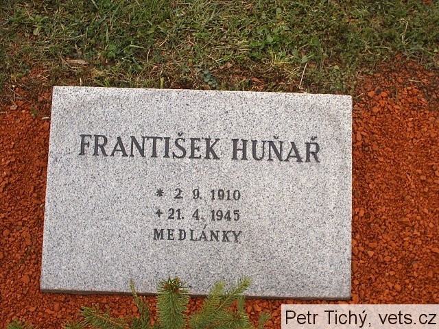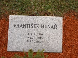 František Huňař, *2.9.1910 Frýdek, okr. Frýdek-Místek – †21.4.1945 Brno-Medlánky, bydliště Brno-Židenice, Slevačská 15, řezník, hrob č. 56