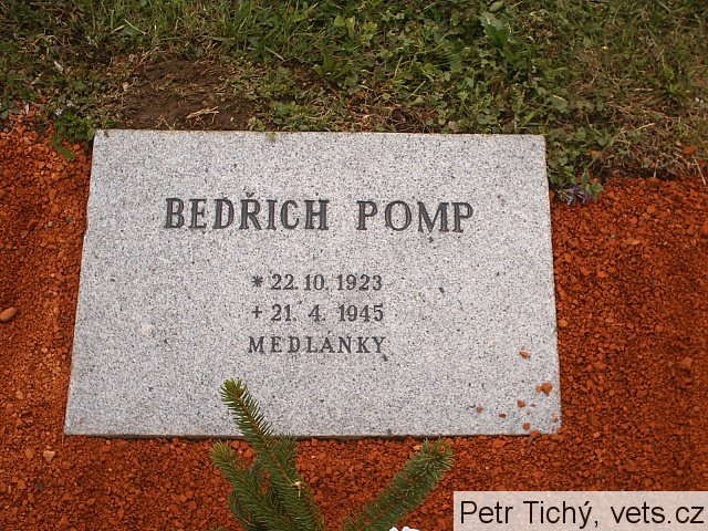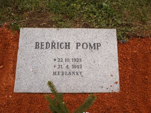Bedřich Pomp, *22.10.1923 Krnov – †21.4.1945 Brno-Medlánky, bydliště Brno, Úvoz 9, úředník, hrob č. 46 (původně č. 68)