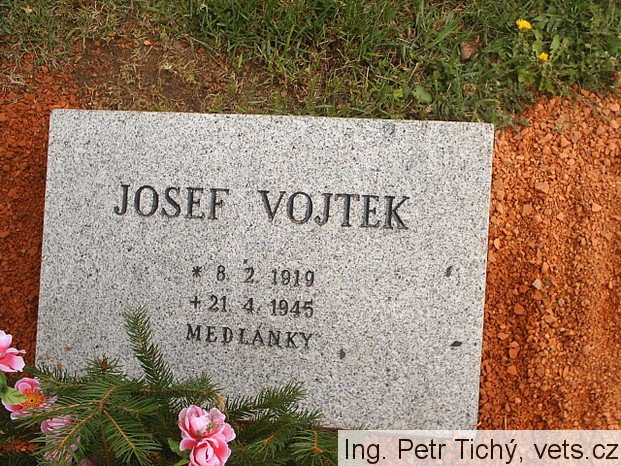 Josef Vojtek, *8.2.1919 Brno – †21.4.1945 Brno-Medlánky, bydliště Brno, Úvoz 14, pokrývač, hrob č. 67