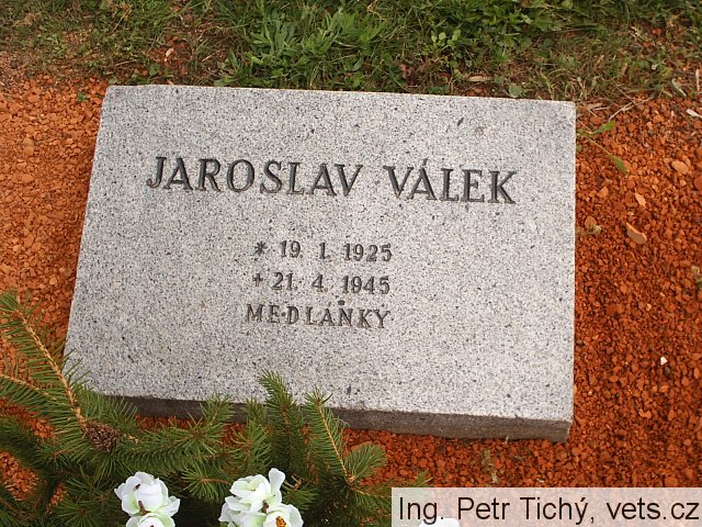 Jaroslav Válek, *19.1.1925 Brno – †21.4.1945 Brno-Medlánky, elektrotechnik, hrob č. 66