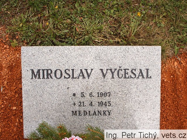 Miroslav Vyčesal, *5.6.1907 Brno – †21.4.1945 Brno-Medlánky, bydliště Brno, Bezručova 19, knihař, hrob č. 62