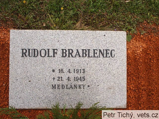 Rudolf Brablenec, *16.4.1913 Velké Pavlovice, okr. Břeclav – †21.4.1945 Brno-Medlánky, bydliště Brno-Maloměřice, Těsná, vrchní číšník, hrob č. 60