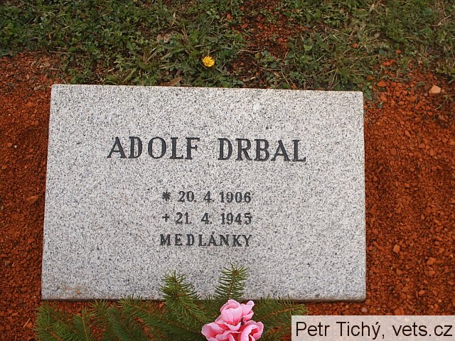 Adolf Drbal, *20.4.1906 Ostašov, okr. Znojmo – †21.4.1945 Brno-Medlánky, bydliště Brno-Maloměřice, Těsná, stolař, hrob č. 58