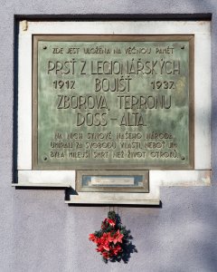 Pamětní deska byla na dům umístěna v roce 1937. V té době byl dům údajně sídlem legionářů. Pod pamětní deskou je zasklená schránka obsahující prsť ze tří legionářských bojišť.