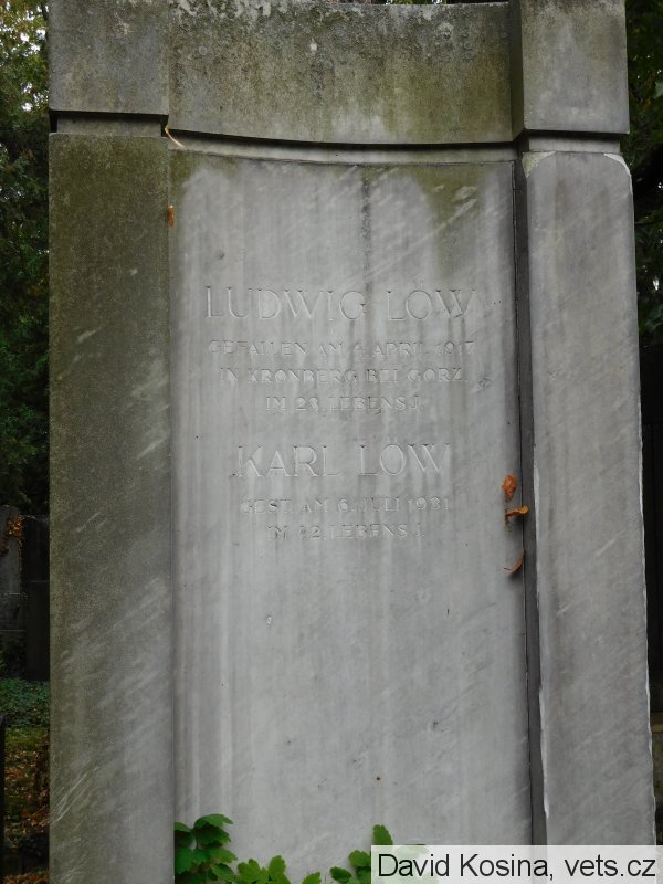V databázi pohřbených na Židovském hřbitově v Brně uvedeno, že Ludwig Löw byl převezen z italského bojiště a pohřben v Brně.