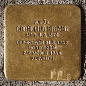 Kámen zmizelého Corneliu Strachovi byl odhalen 2.9.2022. Položení kamene se konalo v rámci multižánrového festivalu židovské kultury Štetl fest.