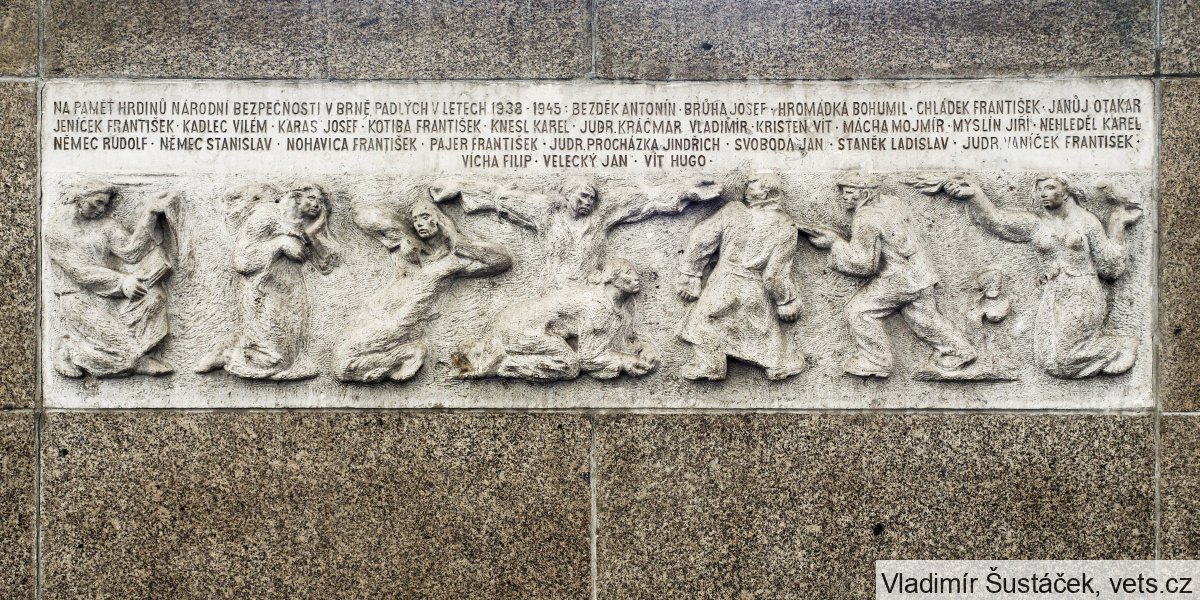 Umístění: Brno, Orlí 655/30, k.ú. Brno-město, ve vstupním vestibulu poštyNA PAMĚŤ HRDINŮ NÁRODNÍ BEZPEČNOSTI V BRNĚ PADLÝCH V LETECH 1938 - 1945: BEZDĚK ANTONÍN • BRŮHA JOSEF • HROMÁDKA BOHUMIL • CHLÁDEK FRANTIŠEK • JANŮJ OTAKAR
