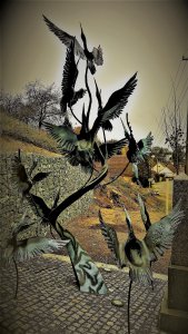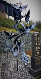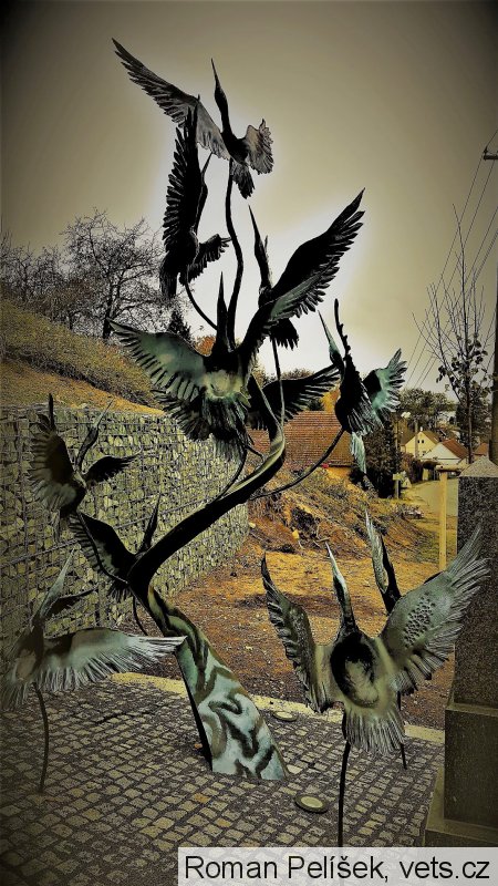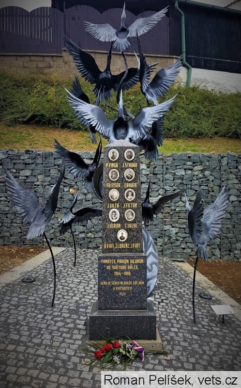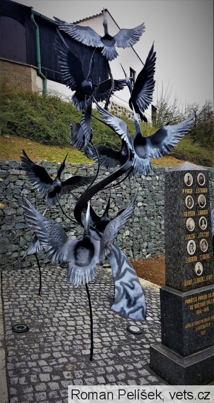 Ručně kovaný více než tři metry vysoký pomník zobrazuje 11 vzlétajících tažných ptáků. Symbolizují stejný počet obyvatel Kvíčovic, kteří zahynuli daleko od domova v 1. světové válce. Jedenáct občanů bojujících za Rakousko-Uhersko padlo na různých frontách.