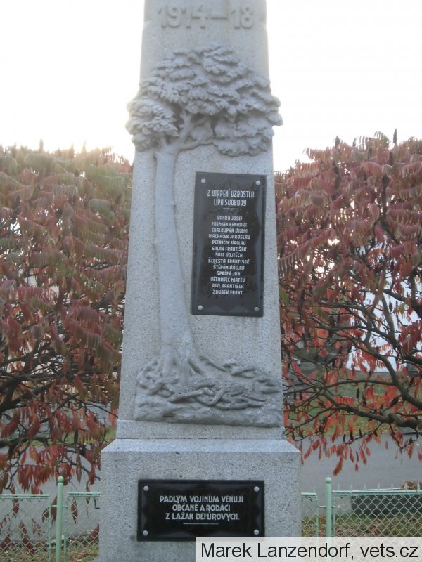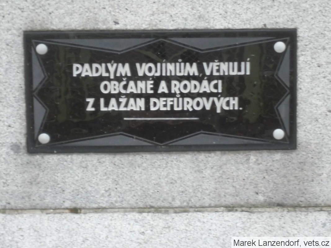 Umístění: Defurovy Lažany, cca 200 m za obcí u silnice do Újezda u Chanovic po levé straněNápis: