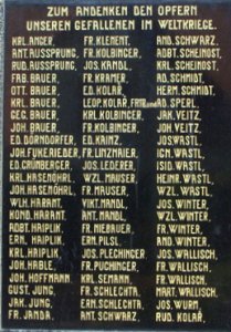 FR. KLEMENT, FR. KOLBINGER, JOS. KANDL, FR. KRAMER, ED. KOLAŘ, LEOP. KOLAŘ, FRITZ UND, KRL. KOLBINGER, KRL. KOLBINGER, FR. KOLBINGER, ED. KAINZ, FR. LINZMAIER, JOS. LEDERER, WZL. MAUSER, FR. MAUSER, VIKT. MANDL, ANT. MANDL, FR. NIEBAUER, ERN. PILSL, JOS. PLECHINGER, FR. PUCHINGER, KRL. SEMAN, FR. SCHLECHTA, ERN. SCHLECHTA, ANT. SCHWARZ