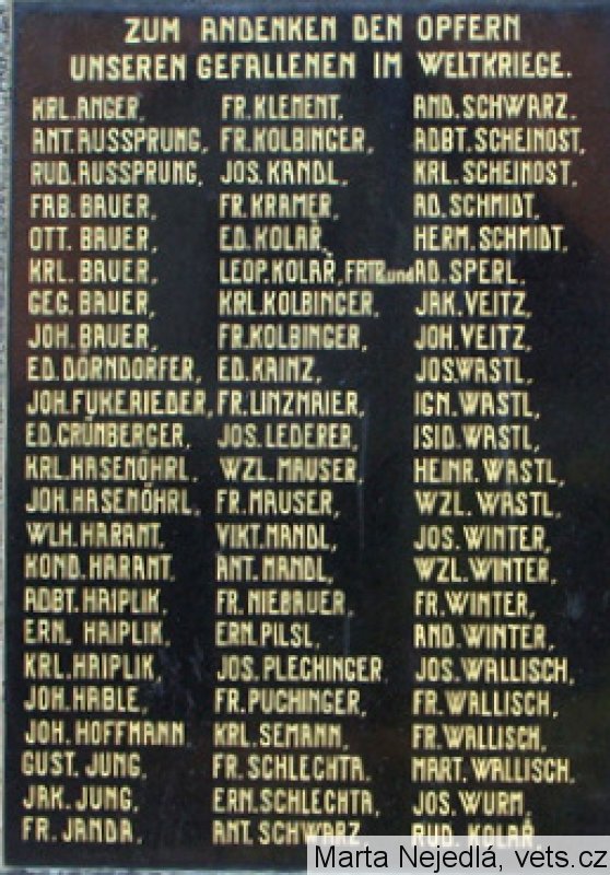 AND. SCHWARZ, ROBT. SCHEINOST, KRL. SCHEINOST, AD. SCHMIDT, HERM. SCHMIDT, AD. SPERL, JAK. VEITZ, JOH. VEITZ, JOS. WASTL, IGN. WASTL, ISID. WASTL, HEINR. WASTL, WZL. WASTL, JOS. WINTER, WZL. WINTER, FR. WINTER, AND. WINTER, JOS. WALLISCH, FR. WALLISCH, FR. WALLISCH, MARK. WALLISCH, JOS. WURM, RUD. KOLAŘ.