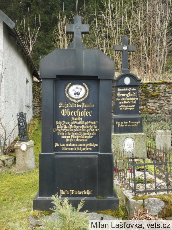 Franz a Karl Oberhoferovi zemřeli na následky válečné služby u IR. Nr. 11. Karl v Hojsově Stráži a Franz v nemocnici v Plzni.