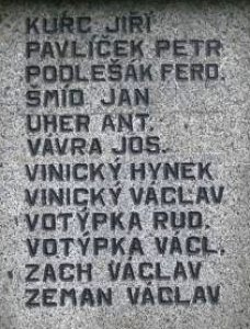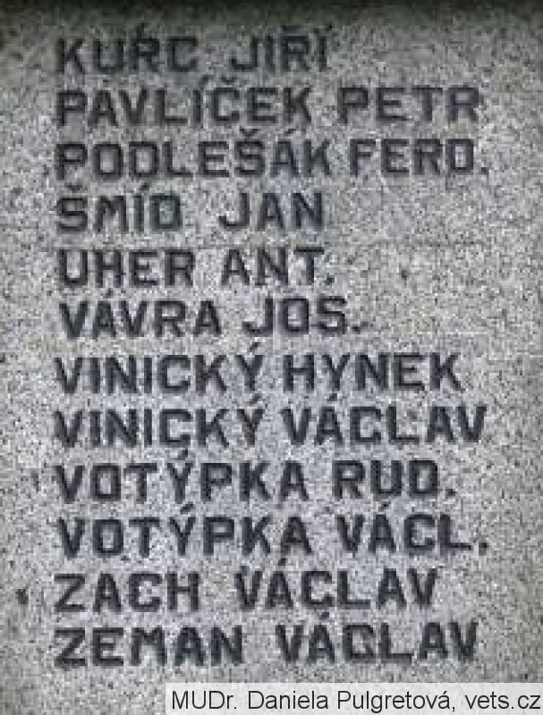 BLÁHA JAN, DOLEJŠ ALOIS ST., DOLEJŠ ALOIS ML., HÁNA KAREL, JÍLEK ANT., JÍLEK JAN, KOČÍ JAKUB, KOČÍ MATĚJ, KOTAL PETR, KOVAŘÍK MATĚJ, KNÍŽE TEODOR, KUBÁT JAN, KURC JIŘÍ, PAVLÍČEK PETR, PODLEŠÁK FERD., ŠMÍD JAN, UHER ANT., VÁVRA JOS., VINICKÝ HYNEK, VINICKÝ VÁCLAV, VOTÝPKA RUD., VOTÝPKA VÁCL., ZACH VÁCLAV, ZEMAN VÁCLAV