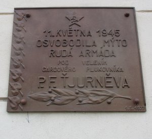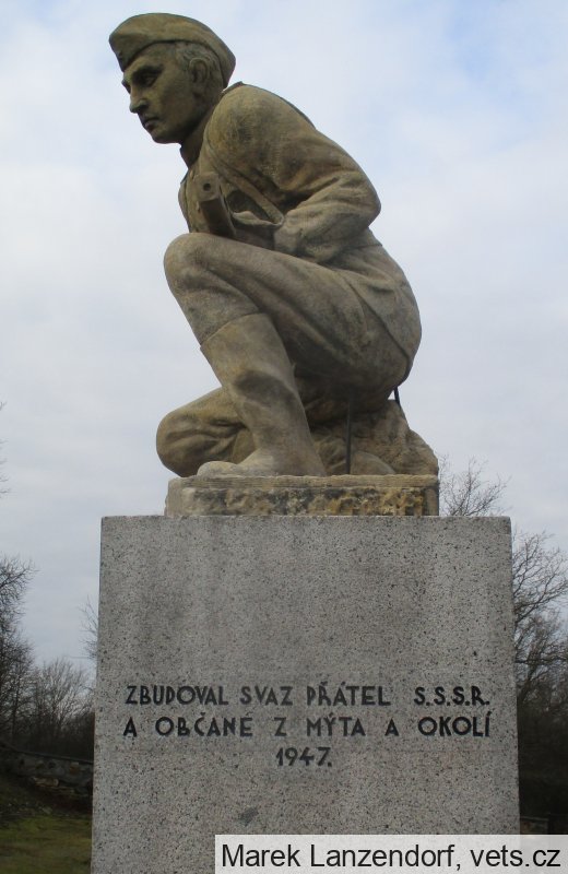 Na následky zranění z předchozích bojů zemřelo po osvobození naší vlasti v Mýtě a okolí 7 rudoarmějců, kteří byli pochováni ve společném hrobě na místním hřbitově. Zásluhou místní odbočky SČSP a za přispění místních složek NF byl jim vybudován památník, který symbolizuje úctu a vděčnost sovětským osvoboditelům. Autorem památníku je plzeňský akademický sochař Šíp. Socha představuje ruského automatčíka ve střehu.