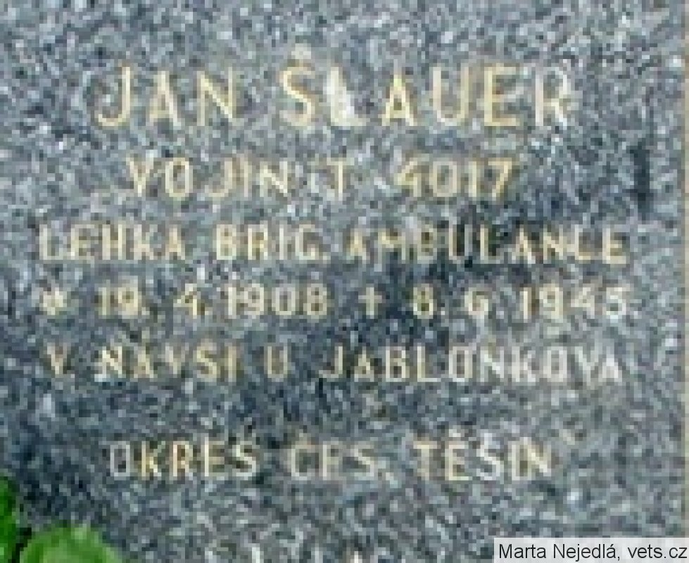 Šlauer Jan, nar. 19.4.1908, Návsí, okr. Český Těšín, os. číslo Z; T-4017. Odveden 22.1.1945, Velká Británie. Další data chybí. (zdroj databáze VÚA Praha)