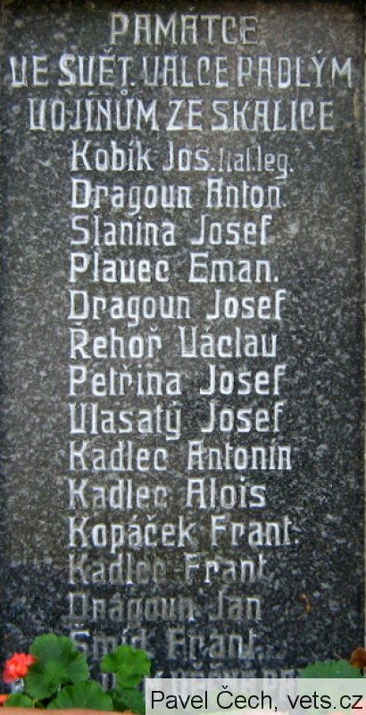 Kobík Josef, nar. 6.3.1897, Skalice. Služba v RU armádě nedoložena. Zajat 25.5.1917, Jamiano. Do ČS legií v Itálii se přihlásil v Padule, zařazen 26.4.1918 jako vojín k 34. pěšímu pluku. Zemřel 14.8.1918 v 66. polní nemocnici na zápal mozkových blan, pohřben v Capnino Veronese. (zdroj databáze VÚA Praha)