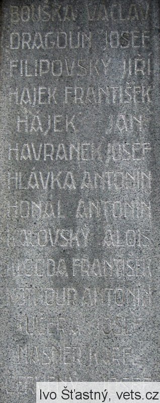 BOUŠKA VÁCLAV, DRAGOUN JOSEF, FILIPOVSKÝ JIŘÍ, HÁJEK FRANTIŠEK, HAVRÁNEK JAN, HLÁVKA ANTONÍN, HONÁL ANTONÍN, KALOVSKÝ ALOIS, KLOUDA FRANTIŠEK, KOTNOUR ANTONÍN, KUČERA JOSEF, MASNER KAREL, ČERVENÝ JOSEF, NEŠUTA LUVÍK, PECHAR KAREL, PLZENSKÝ EDUARD, PLZENSKÝ OLDŘICH, PYTELKA VÁCLAV, PYTELKA JAN, REŠ ANTONÍN, ŠPÍNA JOSEF, STUDNIČKA KAREL, PROCHÁZKA ANTONÍN, ULŠMÍD JOSEF, PŘIBYL ANTONÍN, VONÁŠEK VÁCLAV