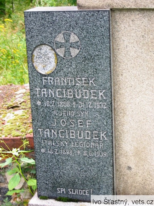 Tancibudek Josef, nar. 18.2.1898, Nový Knín. V RU armádě sloužil u pěšího pluku jako vojín. Zajat 22.9.1917, Deskla. Do ČS legií v Itálii se přihlásil 19.3.1918 v Padule. Zařazen 13.5.1918 k 33. pěšímu pluku jako vojín. Demobilizován 30.11.1919 jako desátník. (zdroj databáze VÚA Praha)