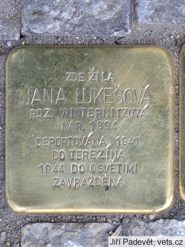 Jana Lukešová byla do Ghetta Terezín deportována 14.12.1941 transportem M, do Auschwitz Birkenau 4.10.1944 transportem En.