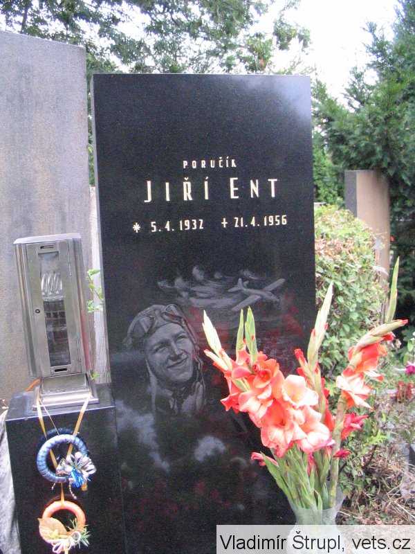 Pilot por. Jiří Ent zahynul 21.4.1956 při letecké nehodě v Kostelci na Hané. Jiří Ent měl před svatbou a čekal na vyřízení žádosti o odchod do zálohy. Již před letem nebyl v dobré náladě, a před přistáním na letišti Prostějov – Stichovice velmi ostře točil okruhovou zatáčku (možná si chtěl vybít zlost), přetáhl letadlo a spadl do vývrtky, kterou pro nedostatek výšky už nestačil vybrat. Letadlo dopadlo do zahrady domu v Kostelci na Hané, vybuchlo a shořelo.