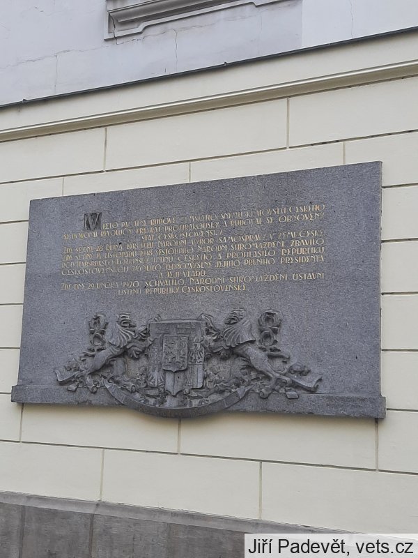 ZDE SE DNE 28. ŘÍJNA 1918 UJAL NÁRODNÍ VÝBOR SAMOSPRÁVY V ZEMI ČESKÉ