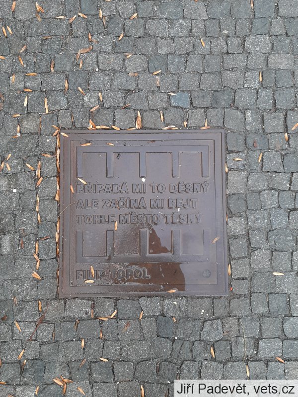 Umístění: Praha 1, U Sovových mlýnů 527, v chodníku před budovouPŘIPADÁ MI TO DĚSNÝ