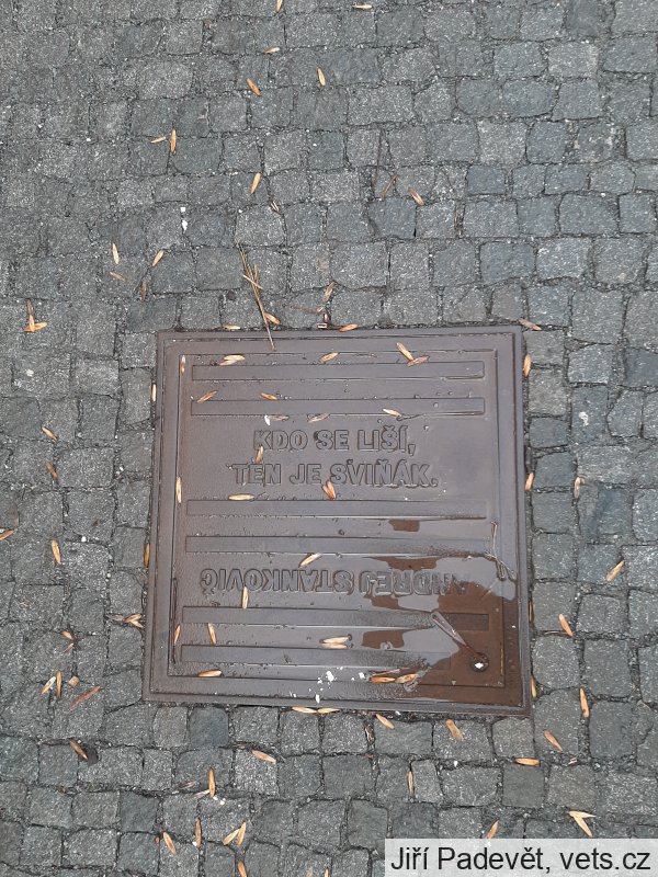 Umístění: Praha 1, U Sovových mlýnů 527, v chodníku před budovouKDO SE LIŠÍ,