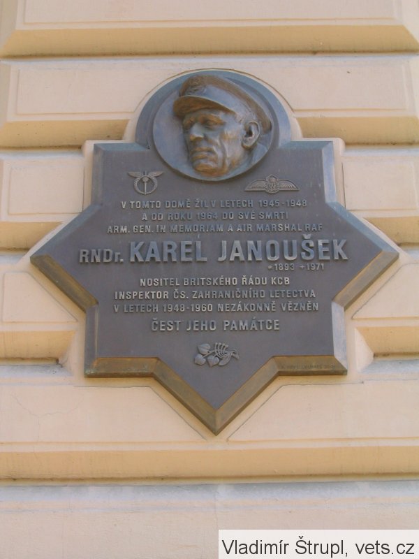 Umístění: Praha 1, U Železné lávky 127/4V TOMTO DOMĚ ŽIL V LETECH 1945-1948 A OD ROKU 1964 DO SVÉ SMRTI ARM. GEN. IN MEMORIAM A AIR MARSHAL RAF