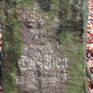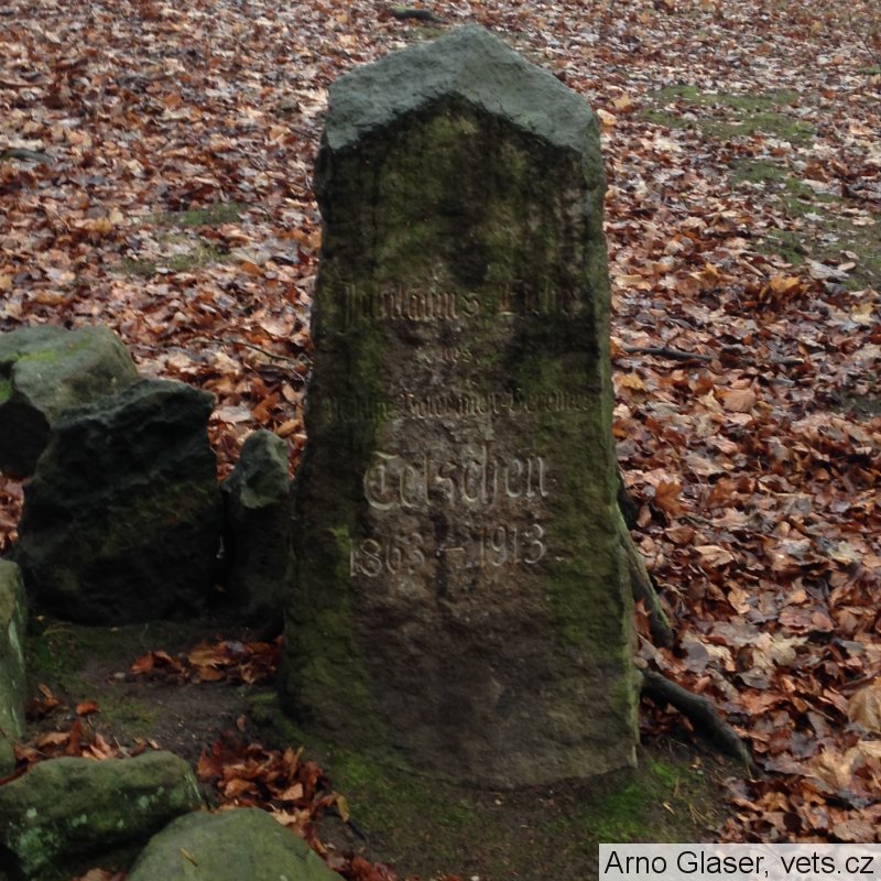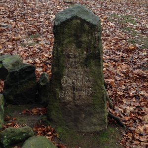 Kámen byl vztyčen při příležitosti vysazení pamětního dubu (dnes pokácený) v r. 1913 a to k padesátému výročí založení veteránského spolku Děčín.