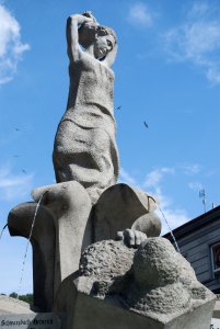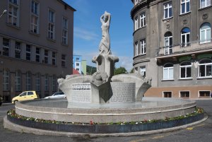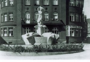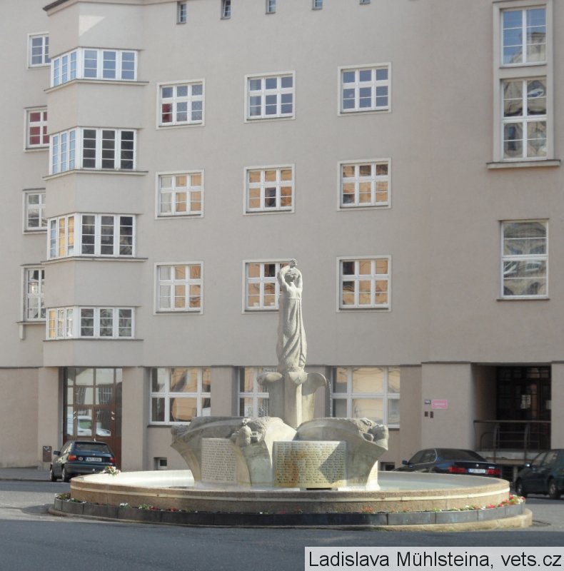 Kruhová vodní nádrž, z jejíhož středu vystupuje ze syenitu vytesaný stylizovaný květ vodní lilie, na jejíchž listech ležela těla padlých vojáků. Na vrcholu z prostřed květu lilie vystupuje plastika plačící dívky, od níž stékala voda přes těla vojáků do vodní nádrže. V dolní části lilie mezi okvětními lístky byly umístěny desky se jmény padlých