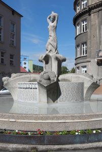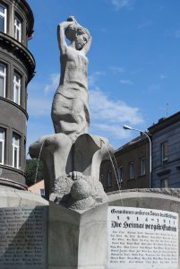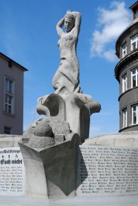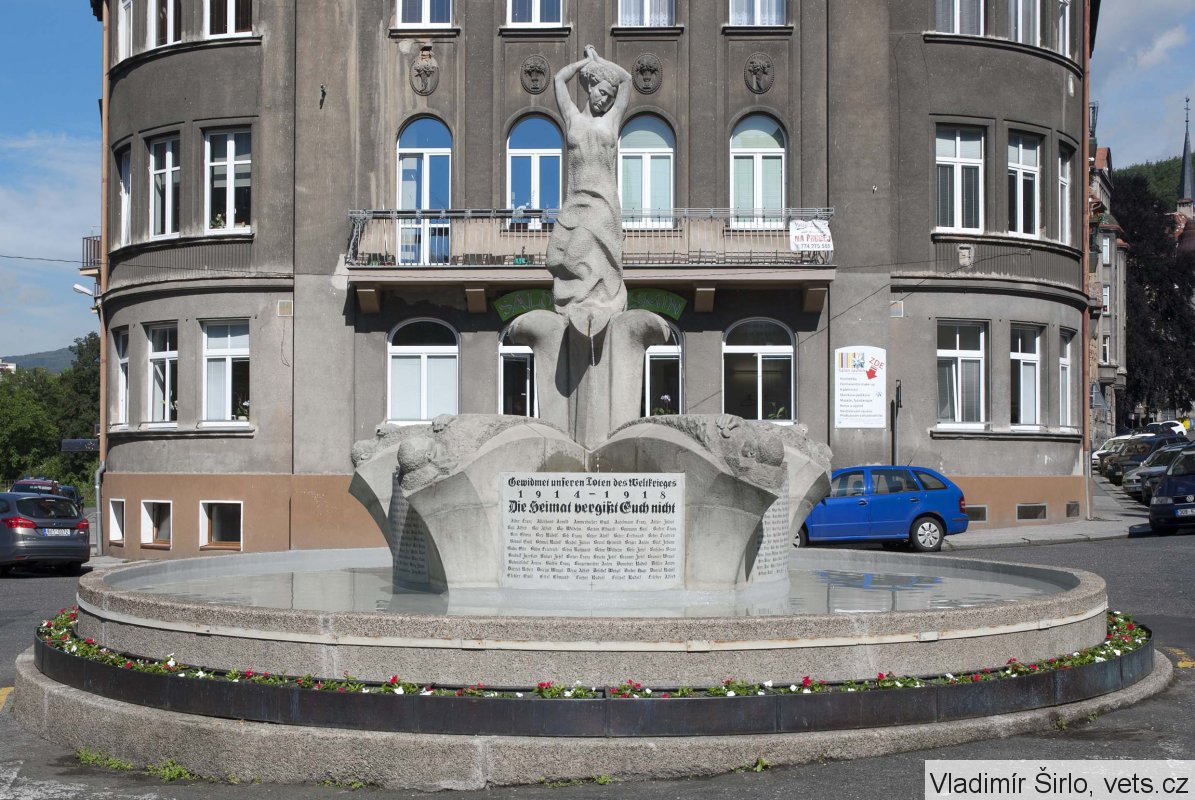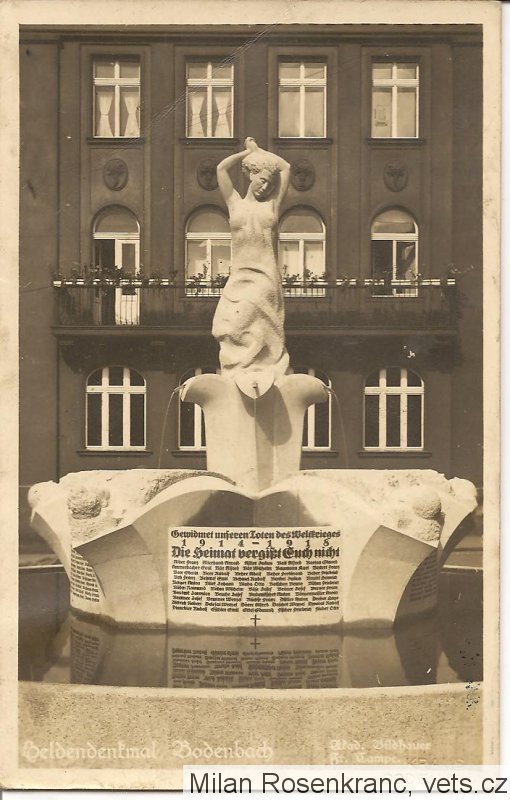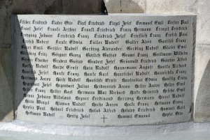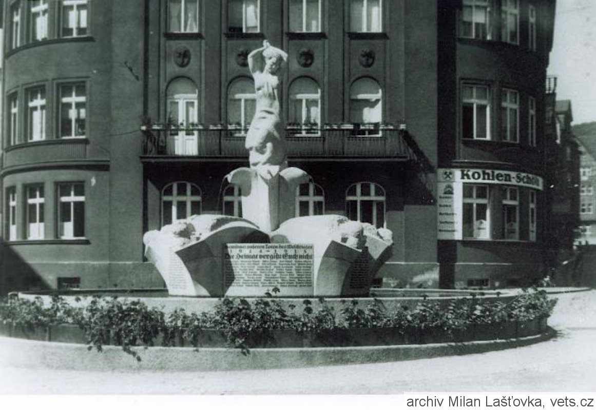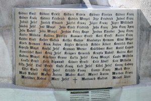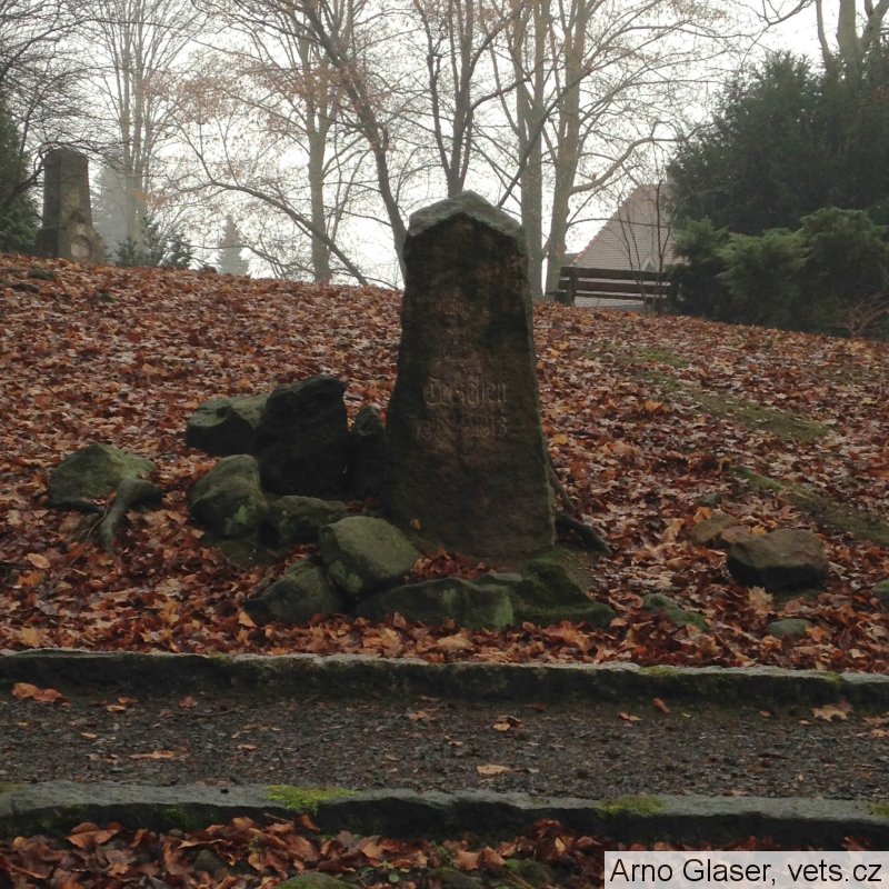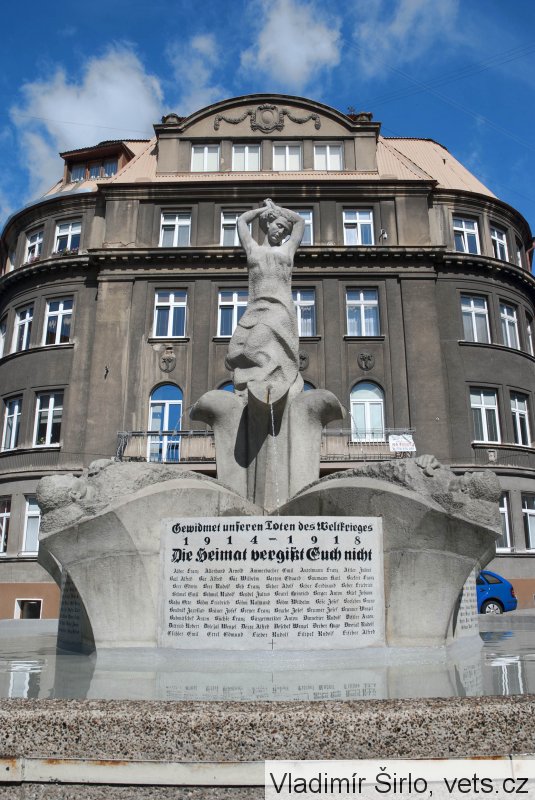 odhalen 09.09.1934, autor Fritz Tampe, po II. světové válce osekána jména padlých a desky překryty betonem, sochám těl vojáků uraženy hlavy. (zdroj databáze CEVH MO)