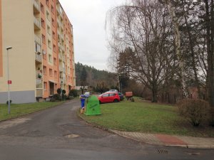 Umístění: Děčín, Vítězství, v parčíku u křižovatky ulic Vítězství x Potoční (ze silnice pro vegetaci téměř není vidět)