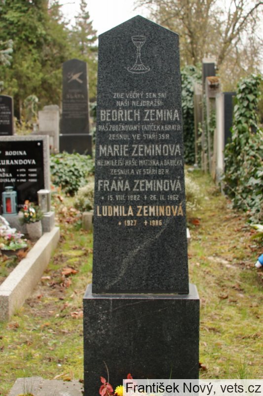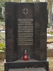 Jméno je uvedeno na pomníku u krematoria Strašnice
