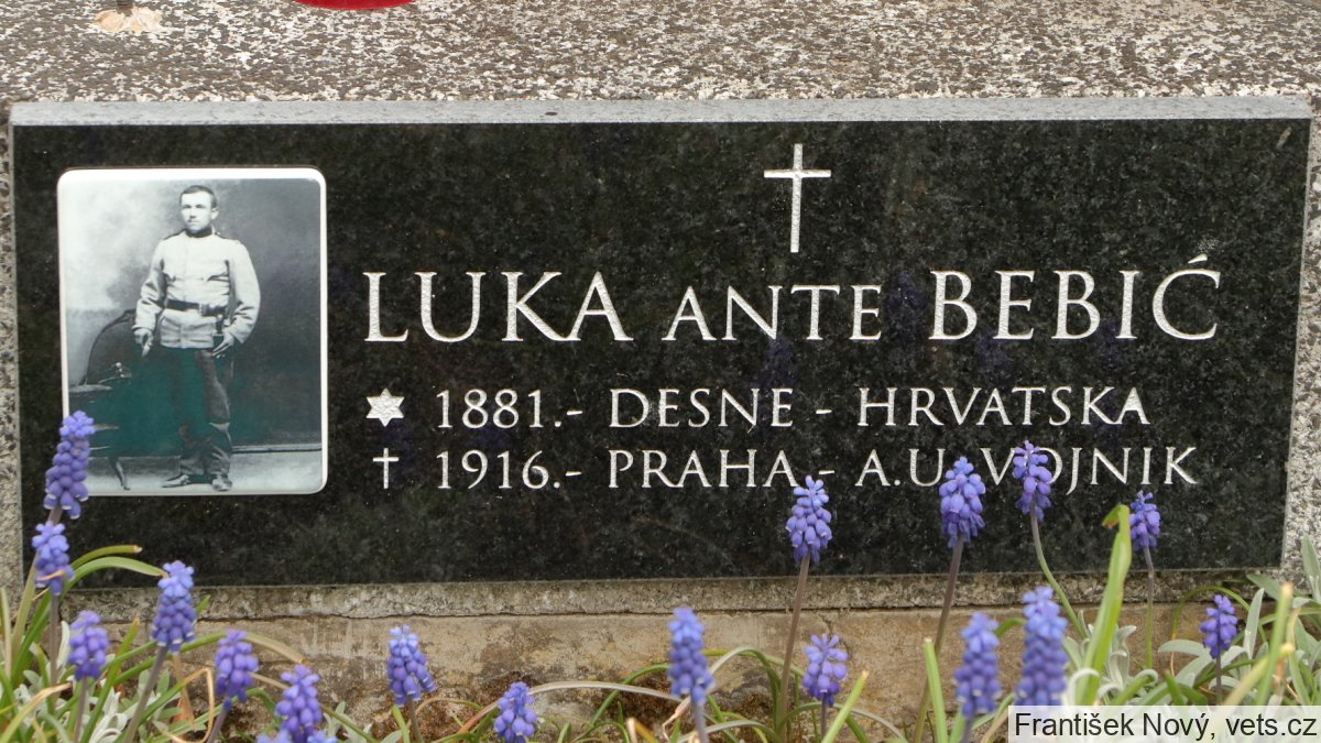 Bebić Luka Ante: *1891. Inft., k. k. LIR. Nr. 37, 9. Komp. +13.2.1916 ResSpit. Nr. 1 Kgl. Weinberge (Královské Vinohrady, Praha), otrava krve, zranění pánve.