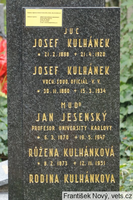 Zdroj: Kovařík, Petr – Klíč k pražským hřbitovům, Praha, NLN, 2001
