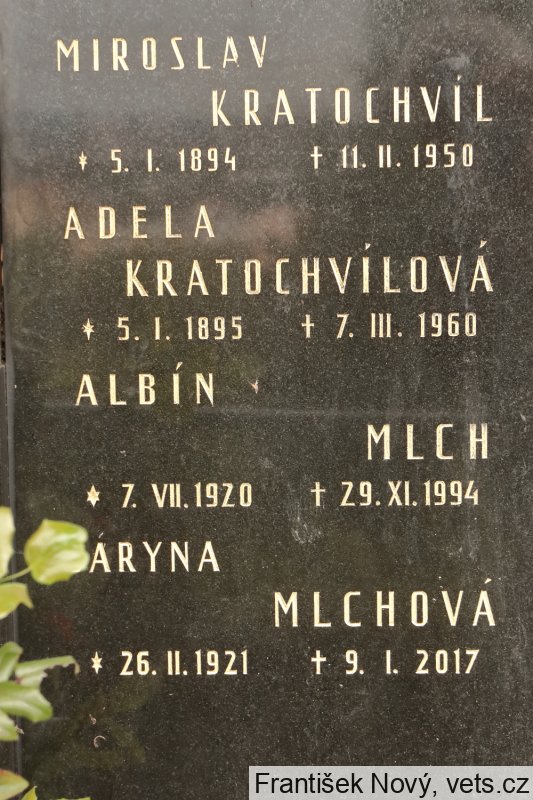 V hrobě je též Albín Mlch, *7.VII.1920 +29.XI.1994, pravděpodobně manžel.