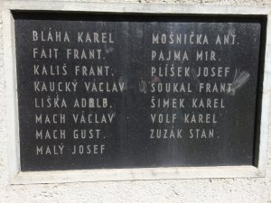 BLÁHA KAREL, FAIT FRANT., KALIŠ FRANT., KAUCKÝ VÁCLAV, LIŠKA ADALB., MACH VÁCLAV, MACH GUST., MALÝ JOSEF, MOŠNIČKA ANT., PAJMA MIR., PLÍŠEK JOSEF, SOUKAL FRANT., ŠIMEK KAREL, VOLF KAREL, ZUZÁK STAN.