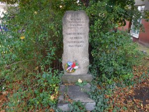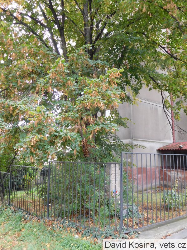 Umístění: Praha 10, U Roháčových kasáren 25, křižovatka ulic U Roháčových kasáren a Ruská, na oploceném pozemku domu čp. 25Nápis: